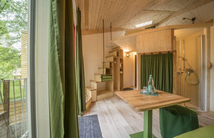 Erlebe das besondere Gefühl, zwischen den Baumwipfeln zu wohnen: Das BIO-Baumhausdorf macht es möglich! Modern, lichtdurchflutet und mit einem Schlafnest unter den Sternen ausgestattet, bieten die Baumhäuser alles, was du für einen unvergesslichen Aufenthalt brauchst: gemütliche Doppelzimmer, barrierefreie Suiten, Duschbad, Balkone und Fahrstuhlzugang. Genieße deinen Morgenkaffee auf dem großen Balkon oder bleib einfach noch ein bisschen im Bett; so beginnt deine Auszeit im Grünen perfekt. Die Baumhaussuiten sind clever durchdacht: ein Schlafzimmer mit komfortablem Doppelbett, ein Wohnzimmer mit Sofa und Tisch, dazu zwei Hochebenen, ein großer Balkon und ein großes, barrierefreies Bad. Die Suiten sind barrierefrei und ebenfalls über den Fahrstuhl erreichbar. Auch auf kleinem Raum bieten die BIO-Baumhäuser viel Platz: Sofa, kleiner Arbeitstisch und ein gemütliches Duschbad. Einige der kleineren Häuser verfügen über französische Balkone oder versteckte Aussichtsmöglichkeiten. Nachts schläfst du unter dem Skylight und genießt den Blick auf das Blätterdach und die Sterne. Ein Baumhaus-Urlaub bei Kenner’s LandLust heißt: Natur erleben, Komfort genießen und Kindheitsträume wahr werden lassen. Das Baumhausdorf im Wendland, Niedersachsen – nahe Hamburg und Hannover – bietet dir unvergessliche Nächte zwischen Himmel und Erde. Baumhaus-Urlaub im Winter? Kein Problem: Die Baumhäuser sind beheizt und bieten auch in der kalten Jahreszeit einen kuscheligen, warmen Rückzugsort.