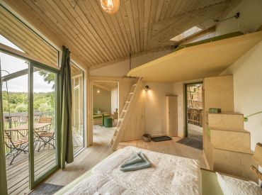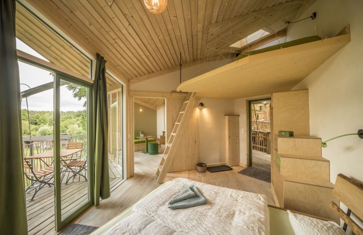 Erlebe Kindheitsträume in luftiger Höhe: Die Baumhäuser im BIO-Hotel Kenner’s LandLust vereinen Naturverbundenheit mit modernem Komfort. Schlafe unter dem Sternenhimmel, wache zwischen den Baumwipfeln auf und genieße pure Entspannung im Wendland. Hier wird dein Baumhaus-Traum zu jeder Jahreszeit wahr.