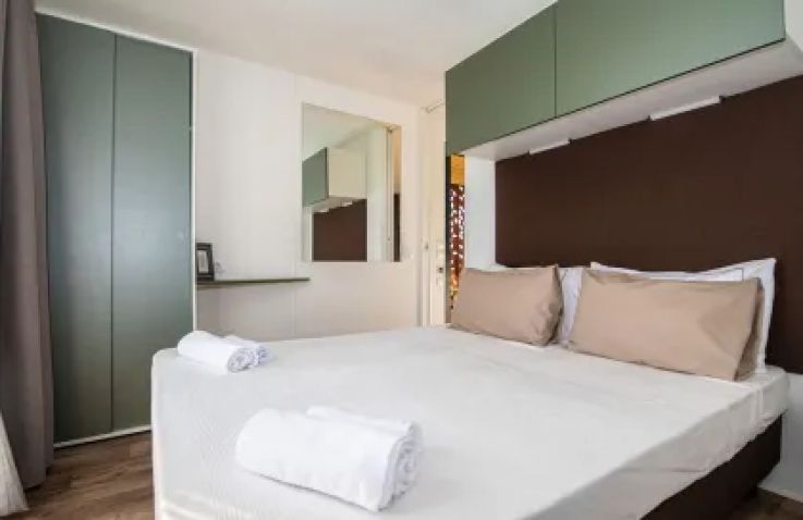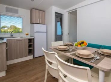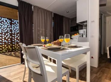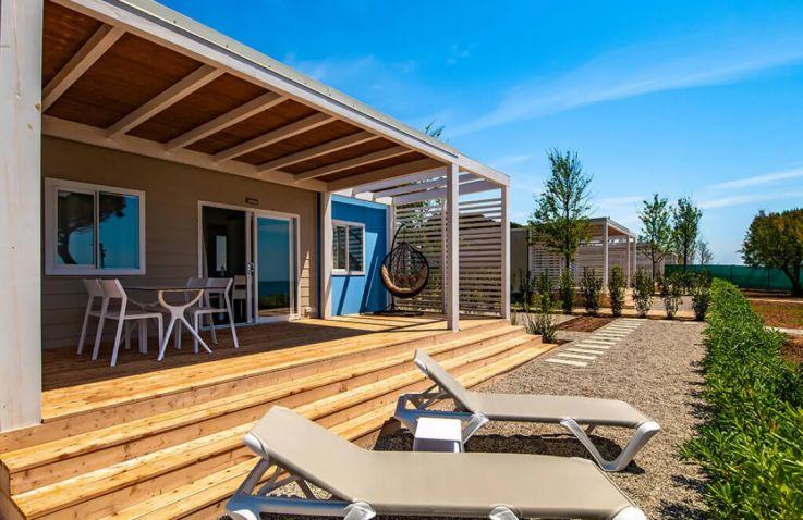 Das Resort bietet eine Auswahl an modernen Mobile Homes für bis zu 5 Personen, die höchsten Komfort mit mediterranem Flair vereinen. Zur Auswahl stehen verschiedene Kategorien wie die Camping Home Next First Row und Camping Home Green, die sich in Ausstattung und Lage unterscheiden.