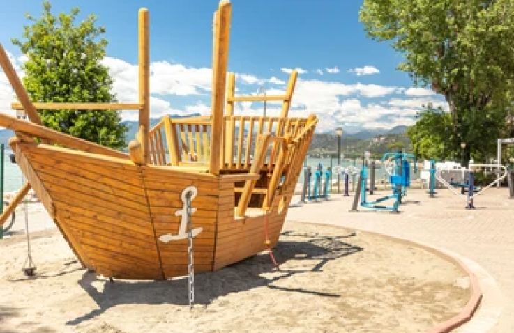 Das malerische Bardolino mit seinem berühmten Weinanbau und dem wöchentlichen Markt ist in unmittelbarer Nähe des Campingplatzes gelegen und lädt zum Bummeln und Genießen ein. Die Festungsstadt Lazise ist direkt am See entlang auf der Strandpromenade zu erreichen und bietet einen spektakulären Blick auf den Hafen und den Gardasee. Die Vergnügungsparks Gardaland und Caneva mit dem größten Wasserpark Italiens sind ebenfalls in der Nähe – ein Pflichtausflug für Familien. Das romantische Verona mit seiner weltberühmten Arena, in der in der Hochsaison Opernaufführungen wie Aida und Nabucco stattfinden, sowie der historischen Altstadt mit Julias Balkon ist ebenfalls gut erreichbar. Per Boot lassen sich zudem weitere pittoreske Gardasee-Orte wie Sirmione, Malcesine und Limone sul Garda erkunden.