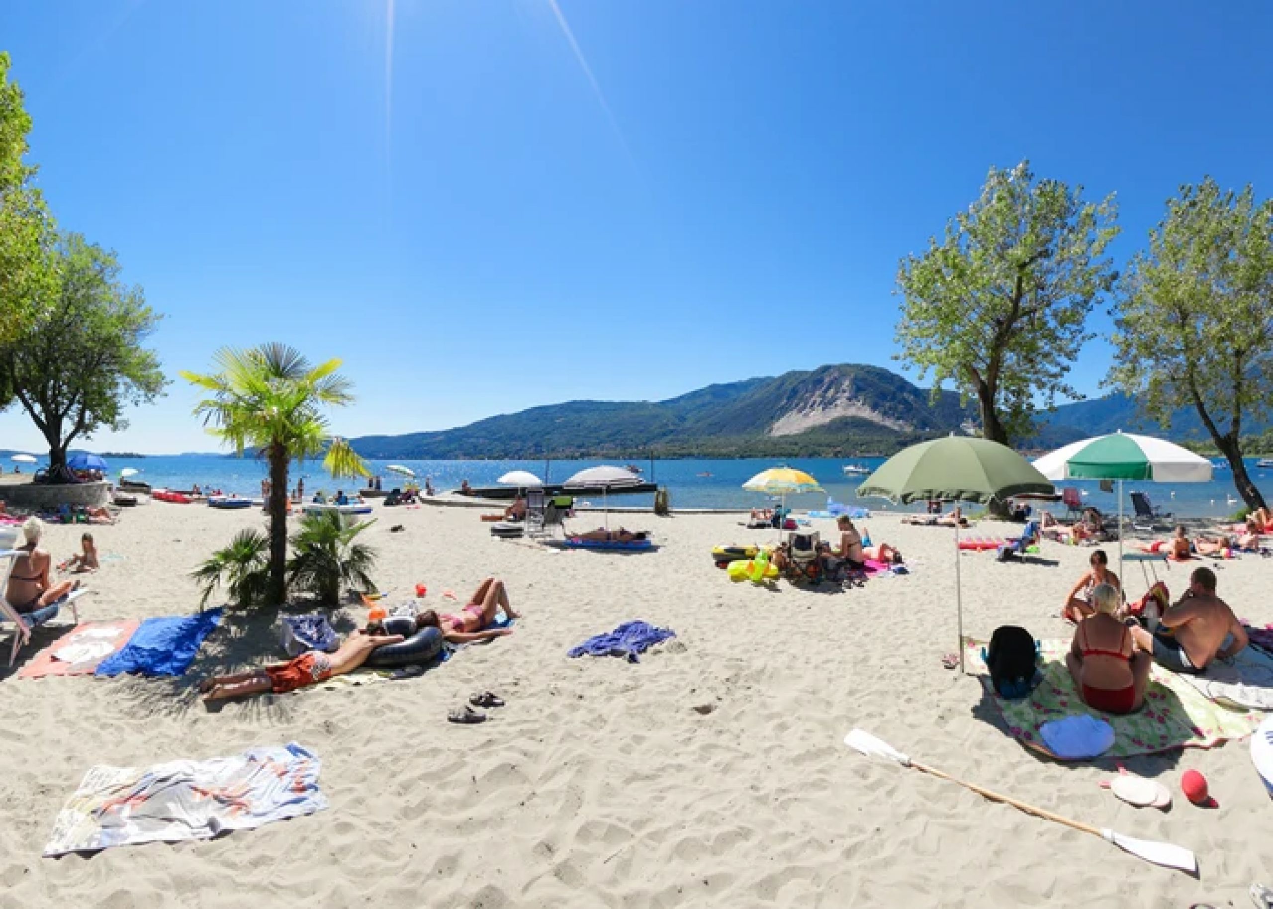 Sportangebot: Kids Club, Fußball, Tischtennis, Aqua-Aerobic, Tennis, Yoga. Direkter Zugang zum Lago Maggiore mit Sand- und Kiesstrand.