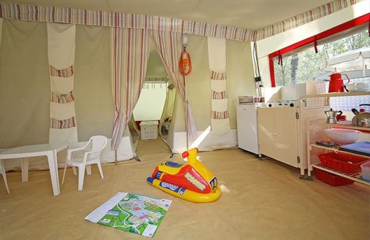Das komfortable Mobilheim bietet Platz für 4-5 Personen mit 2 Schlafzimmern. Das erste Schlafzimmer verfügt über ein Doppelbett, während das zweite Schlafzimmer mit 2 Einzelbetten und einem zusätzlichen Ausziehbett ausgestattet ist – ideal für Familien mit Kindern. Die Küche ist mit Kochfeld und Kühlschrank mit Gefrierfach ausgestattet. Im Außenbereich erwarten dich Gartenmöbel sowie eine Plancha-Grillplatte oder ein Gas-/Holzkohlegrill (falls vom Campingplatz erlaubt). Die Unterkunft bietet alles, was du für einen entspannten Urlaub am See brauchst.