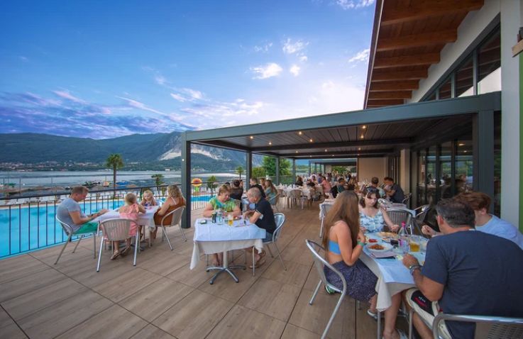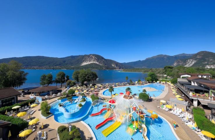 Der Campingplatz liegt direkt am Lago Maggiore mit spektakulärer Poollandschaft auf 1.600 m². Der Hauptpool im Lagunenstil lädt zum Schwimmen ein, während der Wasserspielplatz mit bunten Klettergeräten und Rutschen Kinder begeistert – Wasser spritzt in alle Richtungen und sorgt für stundenlangen Spaß. Entspanne dich in den Massagedüsen, lass dich im Lazy River treiben oder genieße auf der großzügigen Sonnenterrasse den herrlichen Blick auf den See und die umliegenden Berge. Insgesamt 3 Pools und 6 Wasserrutschen garantieren Wasserspaß für die ganze Familie.