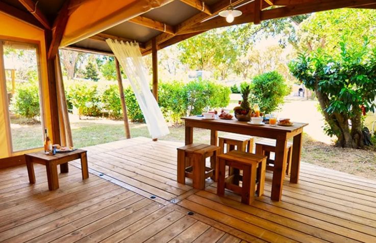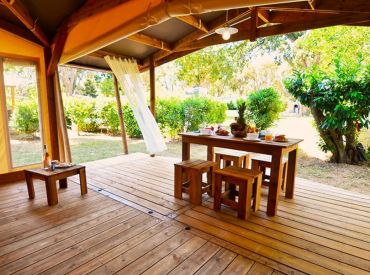 Glamping auf Korsika direkt am Meer – der Campingplatz Merendella in Moriani Plage bietet zwei sehr unterschiedliche Unterkunftserlebnisse, die beide eines gemeinsam haben: traumhafte Lage, Pinienwald und den Strand in unmittelbarer Nähe.