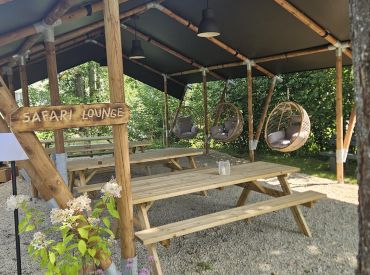 Urlaub mit Abenteuer und Komfort: Das moderne Safarizelt auf Camping Neumühle verbindet Naturerlebnis mit großzügiger Ausstattung. Perfekt für Familien und Gruppen, die besonderen Campingkomfort genießen möchten