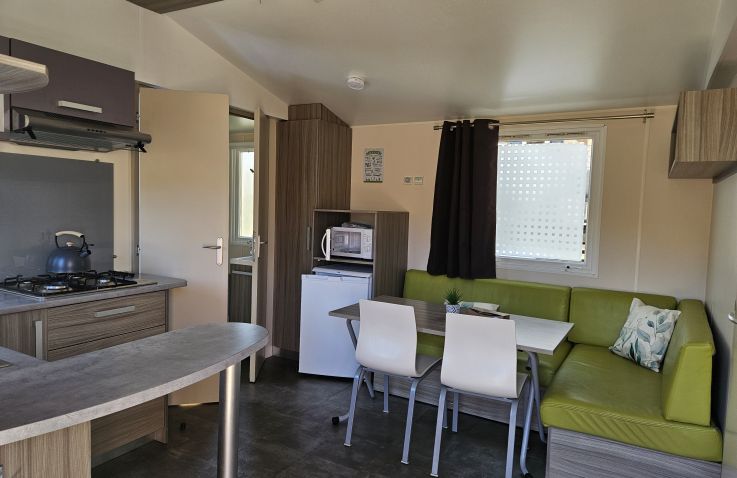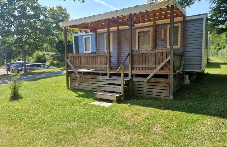 Komfort trifft Natur: Die Mobilheime auf Camping Neumühle bieten gemütliche Rückzugsorte mit allem, was deinen Urlaub rundum entspannt macht.