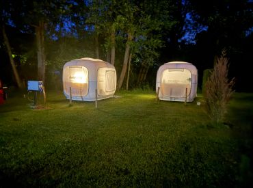 Erlebe eine Nacht unter den Sternen in den Schlafcubes von Camping Neumühle. Komfortable Matratzen, gemütliche Einrichtung und die Nähe zur Natur machen dein Abenteuer unvergesslich.