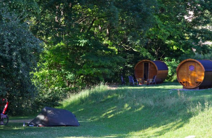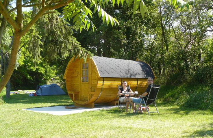 Erlebe Camping mal anders: In einem der urigen Holzfässer von Camping Schwabenmühle verbindest du Naturerlebnis mit gemütlichem Komfort. Umgeben von Weinbergen und historischen Fachwerkstädten schläfst du auf 2×2 Metern Liegefläche, während draußen auf deiner privaten Terrasse schon der Kaffee wartet. Perfekt für alle, die das authentische Taubertal hautnah spüren möchten.