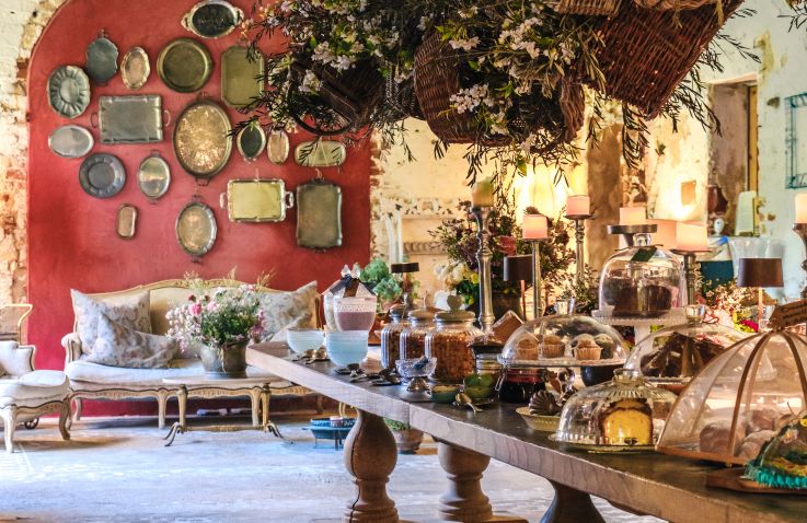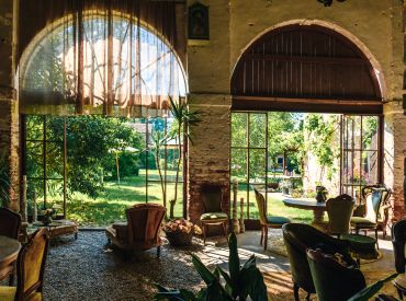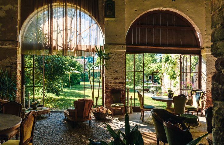 Ausgestattet mit antiken Möbeln, natürlichen Stoffen und besonderen Fundstücken von Reisen, entsteht ein zeitloser Charme, der das Gefühl vermittelt, in einem raffinierten Rückzugsort mitten im Grünen zu wohnen.