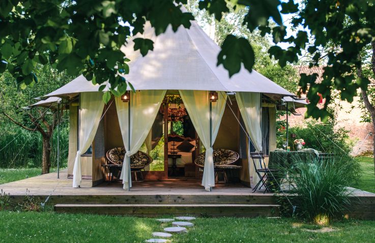 Im Herzen des jahrhundertealten Parks der Villa Veneta liegen sechs liebevoll gestaltete Luxuszelte, die Gästen ein unvergleichliches Glamping-Erlebnis bieten. Jedes Zelt besitzt einen ganz eigenen Charakter und verbindet Natur, Privatsphäre und Eleganz auf harmonische Weise.