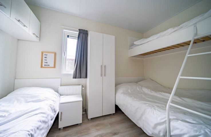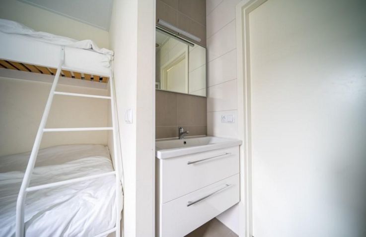 Die Chalets eignet sich für bis zu 8 Personen und umfassen ein Wohnzimmer und eine Küche mit einer Geschirrspülmaschine und einer Kombi-Mikrowelle. Es sind 2 Schlafzimmer vorhanden, eines mit 1 Doppelbett und eines mit 1 Einzelbett, 1 Doppelbett und 1 Hochbett. Das Haus hat auch ein Badezimmer mit Dusche. Auf dem Flur befindet sich eine separate Toilette. Das Chalet verfügt über einen Garten mit einer Terrasse und Möbeln und einen eigenen Parkplatz. Das Wi-Fi kann kostenlos genutzt werden. Auf der offenen, großen Terrasse findest du ebenfalls Gartenmöbel, um schöne Stunden dort verbringen zu können. Das Beste: Die Unterkunft liegt direkt am Wasser & du hast einen herrlichen Blick über das Veluwemeer.