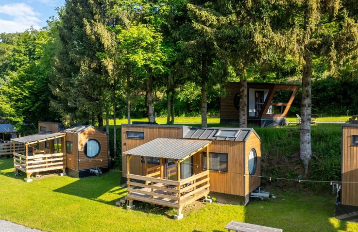 Der autofreie Ferienpark liegt versteckt in den Wäldern der belgischen Ardennen und bietet pure Ruhe und Naturverbundenheit. Durch den Park fließt ein kleiner Bach, in dem Kinder planschen und sich an heißen Sommertagen abkühlen können. Die finnische Sauna mit Panoramablick auf die Wälder lädt zur Entspannung ein – danach sorgt ein erfrischendes Bad im Bach für Abkühlung.