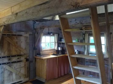 Dieses Wander- und Naturfreundehaus (16,5 m²) ist offen gestaltet und verfügt über einen Essbereich sowie eine einfache Küche mit Spüle, Kaltwasser in Kanistern, einem 1-Flammen-Induktionskochfeld, einer Kaffeemaschine und einem Wasserkocher, ergänzt durch eine separate Sitzecke. Ein Startpaket mit Kaffee, Tee, Öl, Küchenrolle und Ähnlichem steht für dich bereit. Eine Holztreppe führt zu einem offenen Schlafboden mit einem Doppelbett und zwei bequemen Matratzen, von dem aus du vor dem Einschlafen die Sterne beobachten kannst. Der überraschend luxuriöse, zugehörige private Dusch- und Toilettenraum befindet sich im ehemaligen Stall und ist separat abschließbar – so kannst du deine Badutensilien ganz unbesorgt stehen lassen. Genieße dein Frühstück auf der Terrasse oder die untergehende Sonne auf der großen überdachten Veranda. Zur Ausstattung gehören außerdem Brettspiele und Bücher.
