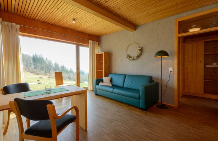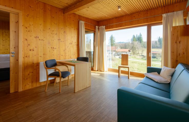 Eingebettet am Waldrand, wo die Natur zu jeder Jahreszeit ihr eigenes Schauspiel bietet, liegen drei freistehenden Wiesnschlafhäusl. Jedes Häusl bietet Platz für bis zu 4 Personen und ist perfekt für einen erholsamen Aufenthalt in der Natur. Diese Unterkünfte verfügen über ein separates Schlafzimmer mit einem gemütlichen Doppelbett sowie einen hellen Wohn- und Schlafraum. In der Teeküche findest du einen Kühlschrank, eine Spüle und eine Kochplatte. So hast du alles, was man für die Zubereitung kleiner Mahlzeiten oder gemütliche Teeabende braucht. Das Bad ist mit Dusche sowie einer Panoramabadewanne, WC und Waschbecken ausgestattet und bietet dir den nötigen Komfort während deines Aufenthalts.