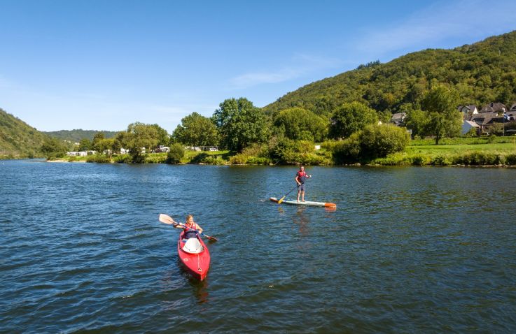 Leih dir ein Kanu, SUP, Fahrrad oder E-Bike und entdecke die Mosel. Unser Pool lädt die ganze Familie zum Schwimmen ein, der Beachclub versorgt dich mit Eis, Snacks und kühlen Drinks. Minishop, Dorfladen und 24/7-Automaten sorgen dafür, dass du jederzeit alles hast, was du brauchst. Spiele Minigolf oder Adventuregolf, Tischtennis oder Beachvolleyball (außer an langen Wochenenden) – und für die Kids gibt’s einen tollen Spielplatz. Wer entspannen will, genießt Whirlpool und Sauna in unserer Camper-Wellness.