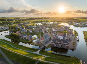Die Ferienhäuser in Esonstad liegen direkt am Wasser und passen mit ihrem Stil perfekt in die friesische Landschaft. Alles ist wie ein kleines Dorf aufgebaut, was dem Ganzen eine entspannte und gemütliche Atmosphäre gibt. Hier kannst du einfach abschalten, die Ruhe genießen und bist trotzdem mitten in der Natur rund um das Lauwersmeer.