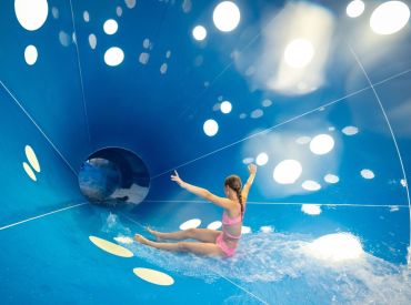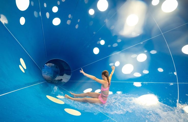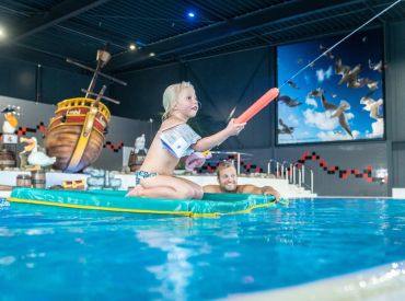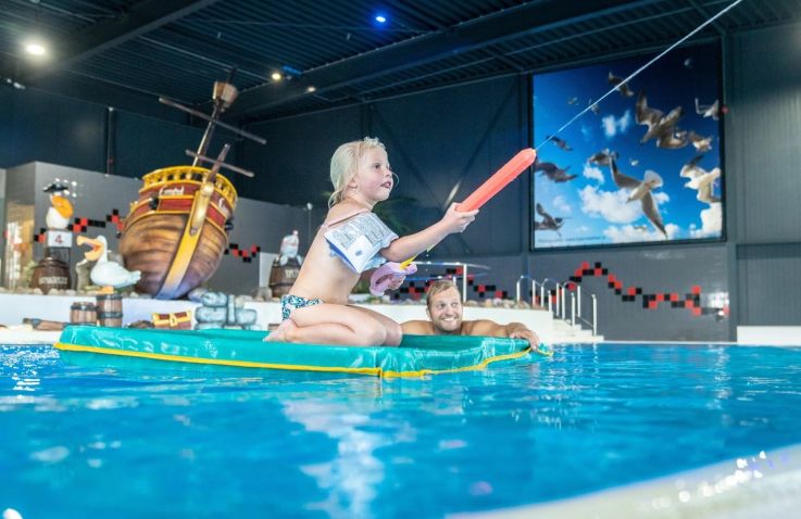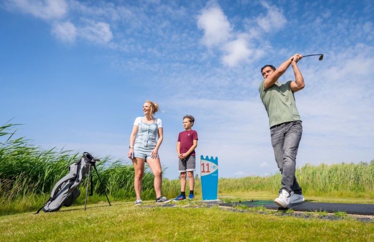 Im Mittelpunkt stehen ein Hallenschwimmbad mit Kinderbereich sowie Wellnessmöglichkeiten wie Sauna, Whirlpool und Dampfbad. Für Kinder gibt es ein großes Indoor-Spielparadies, Spielplätze und ein abwechslungsreiches Animationsprogramm. Sportlich können Gäste auf dem 9-Loch-Pitch-&-Putt-Golfplatz oder beim Footgolf aktiv werden, während Wassersport auf den umliegenden Seen ebenfalls eine wichtige Rolle spielt. Ergänzt wird das Angebot durch Fahrradverleih und verschiedene gastronomische Einrichtungen, die regionale Speisen und internationale Gerichte anbieten.