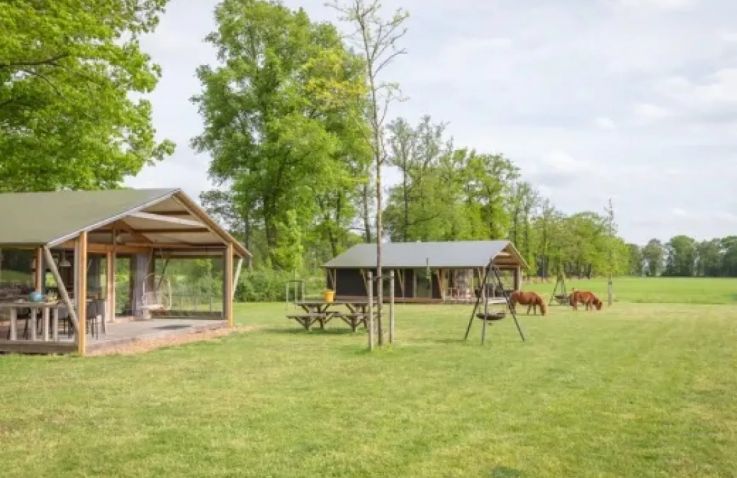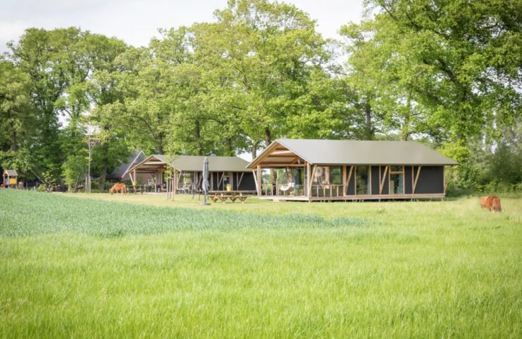 Landrijk De Reesprong ist ein aktiver Bauernhof in Haaksbergen in der Region Twente, bei dem das Leben im Freien vom ersten Morgen bis zum Lagerfeuer am Abend im Mittelpunkt steht. Kinder können Kühe streicheln, füttern und melken, Kaninchen und Ziegen kuscheln sowie Ponys reiten, bürsten und pflegen. Ein großer Indoor-Spielboden, ein Sand- und Wasserspielplatz sowie ein eigenes Waldstück zum Hüttenbauen bieten reichlich Abwechslung. In den Ferienzeiten gibt es ein Aktivitätenprogramm. Eine Scheune mit Kettcars und Trettraktoren sowie ein Hofladen mit regionalen Produkten runden das Angebot ab. Manche Lodges lassen sich um einen Whirlpool erweitern.
