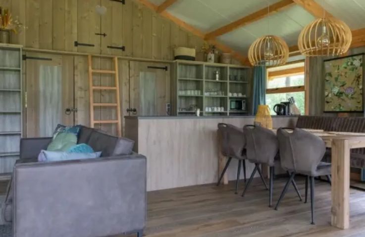Beide Lodges bieten Platz für bis zu sechs Personen und sind großzügig und hochwertig ausgestattet. Die Wellness Luxe Lodge und die Luxe Lodge verfügen jeweils über ein geräumiges Wohnzimmer mit Ess- und Sitzecke, Pelletofen und Klimaanlage für ein angenehmes Raumklima zu jeder Jahreszeit, sowie einen Fernseher mit NL 1,2,3 und Radio. Die vollständig ausgestattete Küche umfasst Herd, Induktionskochfeld, Geschirrspüler, Mikrowelle, Kühlschrank mit Gefrierfach, Nespresso-Kaffeemaschine und Wasserkocher. Das Badezimmer ist mit einer geräumigen Duschkabine, Waschbecken und Toilette ausgestattet. In beiden Lodges gibt es drei Schlafbereiche: ein Zimmer mit Doppel-Boxspringbett, ein zweites Zimmer mit zwei Einzel-Boxspringbetten sowie einen Schlafboden mit zwei weiteren Betten. Die überdachte Terrasse mit Gartenmöbeln sowie eine eigene Feuerstelle laden zu langen Abenden im Freien ein. Parkplatz ist direkt bei der Lodge vorhanden. Bettwäsche ist verpflichtend; Handtücher und Küchentücher können gegen Aufpreis hinzugebucht werden, die Betten sind bei Ankunft gemacht.
