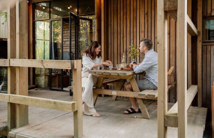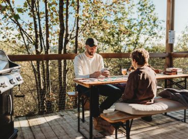 In der Forest Village im Elsass von Nutchel gibt es neben einem leckeren und regionale Frühstück auch die Möglichkeit, BBQ Pakete oder raclette- und Münsterkäsekörbe zu bestellen. Zudem gibt es bei den Nutchel Cabins einen Fahrradverleih (E-Bike), einen Outdoor Pool, eine Sauna aus Holz, einen kleinen Honesty Shop sowie eine gemütliche Feuerstelle. Für die Kleinen gibt es ebenso eine Kinderecke und spielplatz, bei der Spaß vorprogrammiert ist.