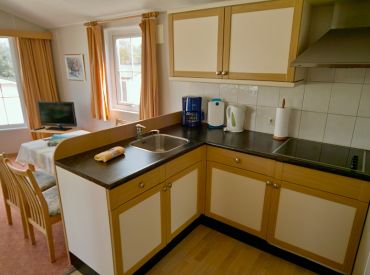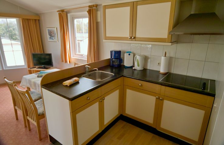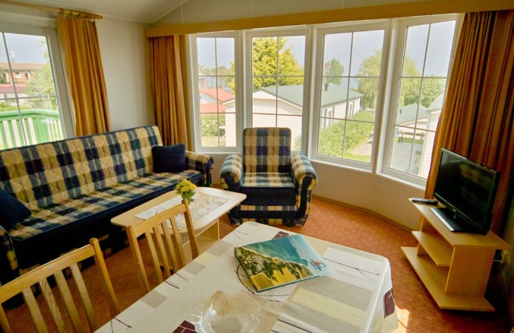 Im Bungalow Kolibri wohnst du komfortabel mit eigener Terrasse und einem Parkplatz direkt am Haus. Die Räume sind alle beheizbar und das Gebäude ist komplett rauchfrei. In der Küche findest du alles, was du brauchst: Herd, Kühlschrank, Wasserkocher, Kaffeemaschine sowie Geschirr, Besteck und Töpfe. Das Wohnzimmer ist mit einer Schlafcouch, Essecke und Sat-TV mit 56 Programmen (viele in HD) ausgestattet. Das Elternschlafzimmer verfügt über zusammenstehende Betten, im Kinderschlafzimmer sind die Betten getrennt. Das Badezimmer bietet Dusche, Waschbecken und WC. Bitte bringe Bettwäsche und Handtücher selbst mit, Hunde können nicht mitgebracht werden.