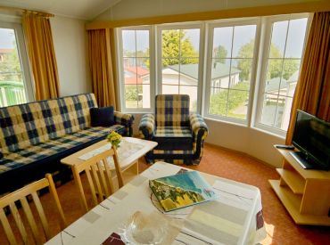 Der Bungalow Pelikan bietet dir einen entspannten Aufenthalt mit Terrasse, eigenem Parkplatz und beheizbaren Räumen. Du findest eine komplett eingerichtete Küche mit Herd, Kühlschrank, Kaffeemaschine, Wasserkocher sowie allen wichtigen Küchenutensilien. Im Wohnzimmer erwarten dich eine gemütliche Schlafcouch, eine Essecke und Sat-TV mit 56 Programmen in HD. Das Elternschlafzimmer hat Platz für ein Kinderreisebett, im Kinderschlafzimmer stehen zusammenstehende Betten. Das Bad ist mit Dusche, Waschbecken und WC ausgestattet. Der Bungalow ist ein Nichtraucherobjekt, Hunde sind nicht zugelassen und Bettwäsche sowie Handtücher bitte selbst mitbringen.
