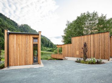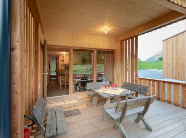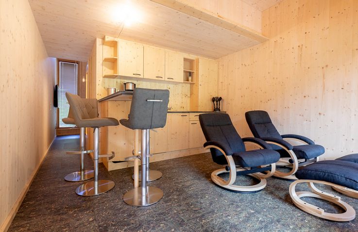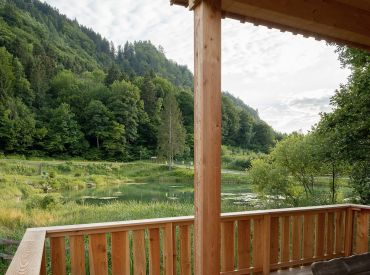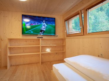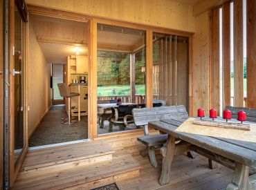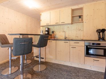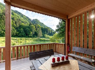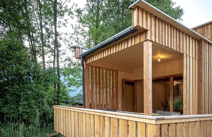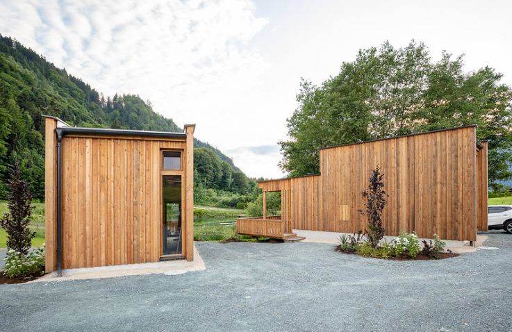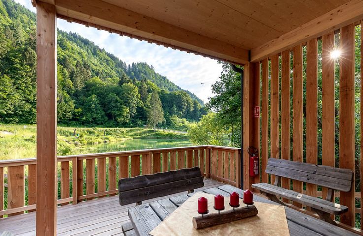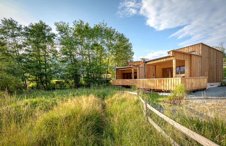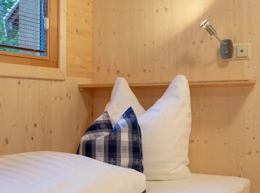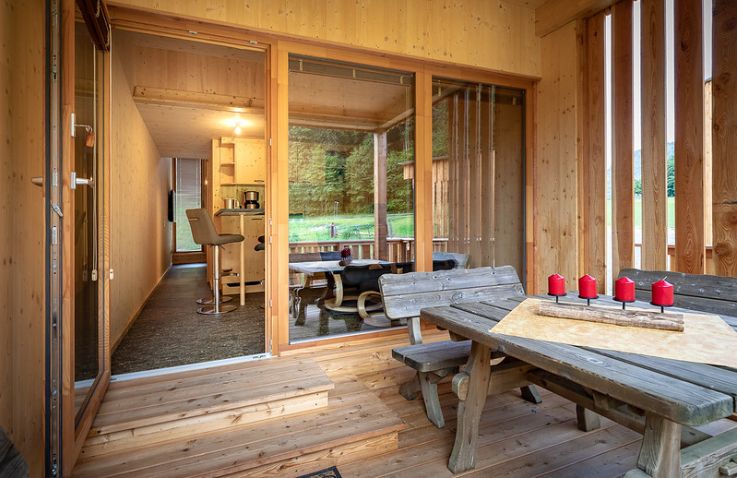 Die zwei Glamping Lodges bieten eine vollausgestattete Wohnküche mit Geschirrspüler, Herd mit Backofen/Mikrowelle, Kaffeemaschine und Wasserkocher. Bad und WC sind selbstverständlich vorhanden. Im Obergeschoss befinden sich ein Schlafzimmer sowie eine Schlafkoje mit Panoramafenster. Von der kleinen Terrasse aus genießt man den Blick auf den hauseigenen Forellenteich. Zum Baden steht das nahegelegene Strandbad Ossiach zur Verfügung, das Gäste kostenlos nutzen können.