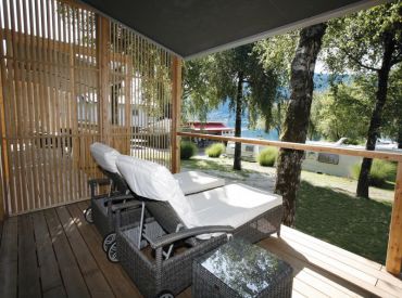 Die Camping Family-SeeLodge bietet auf 30 m² viel Platz und Komfort. Das moderne Ferienhäuschen verfügt über ein Schlafzimmer mit Doppelbett, ein zweites Schlafzimmer mit zwei getrennten Betten sowie ein zusätzliches Hochbett. Zwei Badezimmer mit Dusche/WC sorgen für extra Komfort. Die Wohnküche mit Geschirrspüler, Mikrowelle und Kaffeemaschine sowie der Wohnbereich mit Essplatz lassen keine Wünsche offen. Entspannte Stunden genießt du auf der überdachten Terrasse mit Mobiliar, Outdoor-Liegebetten und Gasgriller. Abstellplatz für Fahrräder und Ferienutensilien ist inklusive.