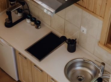Das Tiny House bietet mit seinen 28 m² Wohnfläche gemütlichen Charme mit praktischer Ausstattung und liegt nur wenige Meter vom Natursee entfernt. Auf einer Ebene findest du einen einladenden Wohn- und Essbereich, eine gut ausgestattete Küchenzeile mit Backofen, Kühlschrank, Nespresso Kaffeemaschine, Wasserkocher sowie Geschirr und Besteck. Zwei separate Schlafzimmer – eines mit einem Doppelbett (1.4 x 1.9 m) und eines mit einem Stockbett für Kinder (2 x 0.8 x 1.95 m) – bieten Platz für die ganze Familie. Ergänzt wird die Ausstattung durch ein Badezimmer mit Dusche und ein separates WC.