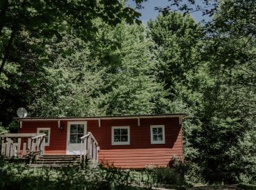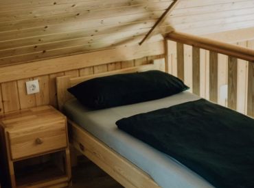 Erlebe einen entspannten Aufenthalt in einer der charmanten Blockhütten des Naturcampingplatzes Waldbad Isny. Die Blockhütten sind in solider Bauweise aus Holz gefertigt und liegen umgeben von Bäumen und Wiesen, zwischen 10 und 40 Meter vom Natursee entfernt. Mit 45 m² Wohnfläche verbinden sie rustikalen Charme mit komfortabler Ausstattung. Im Erdgeschoss findest du einen Ess- und Wohnbereich, eine gut ausgestattete Küchenzeile mit zwei Kochfeldern, Kühlschrank, Nespresso Kaffeemaschine, Wasserkocher, Geschirr und Besteck. Außerdem ein Badezimmer mit Dusche und WC sowie ein Schlafzimmer mit einem Doppelbett (1.35 x 1.90 m). Der offene Schlafboden im Obergeschoss ist durch eine schmale Treppe erreichbar und bietet zwei Einzelbetten (0.8 x 1.95 m). Von der überdachten Veranda mit Terrassenmöbeln kannst du den Ausblick genießen und die Ruhe des Allgäus auf dich wirken lassen.