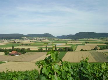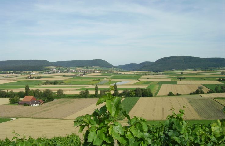 Trasadingen liegt eingebettet in die sanften Hügel des Klettgaus im Schaffhauser Blauburgunderland. Der Weinwanderweg startet direkt im Dorf und führt durch die malerischen Rebberge – auf 22 Informationstafeln erfährst du Wissenswertes über Weinbau und Dorfgeschichte. Die historische Stadt Schaffhausen mit ihren mittelalterlichen Gassen, dem imposanten Munot und dem Kloster Allerheiligen erreichst du nach nur 18 Kilometern (etwa 17 Minuten mit Zug oder Auto). Ein absolutes Muss ist der Rheinfall, einer der mächtigsten Wasserfälle Europas mit 23 Metern Höhe und 150 Metern Breite – nur rund 16 Kilometer entfernt. Das romantische Städtchen Stein am Rhein am Bodensee lädt mit seinen bemalten Fassaden zum Flanieren ein. Mountainbike- und Velorouten durchziehen die gesamte Region, während zahlreiche Weingüter zur Degustation einladen.