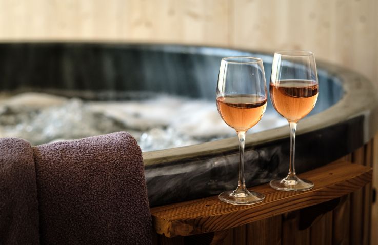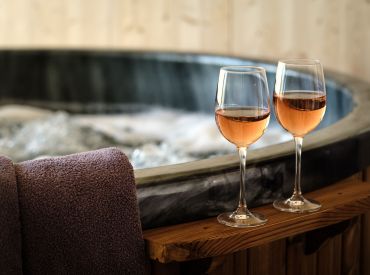 Zusätzlich buchbar: Exklusiver Whirlpool-Genuss im Badhüüsli für 2 Personen (1 Stunde für CHF 18.-). Das schicke Wellness-Häuschen am Fuße der Rebberge bietet die perfekte Auszeit nach Wanderungen oder Ausflügen. Optional ist auch das Wellness-Weekend-Paket buchbar, das die Übernachtung im Räbhüüsli, eine Stunde Badhüüsli-Nutzung, eine Flasche hauseigenen Schaumwein am Pool sowie das regionale Winzer-Frühstück kombiniert.